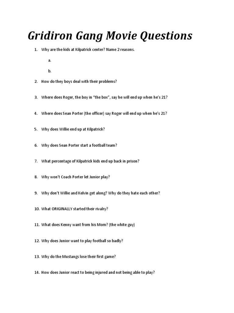 Gridiron Gang [Full Movie]⇐: Gridiron Gang Movie Questions Answer Key